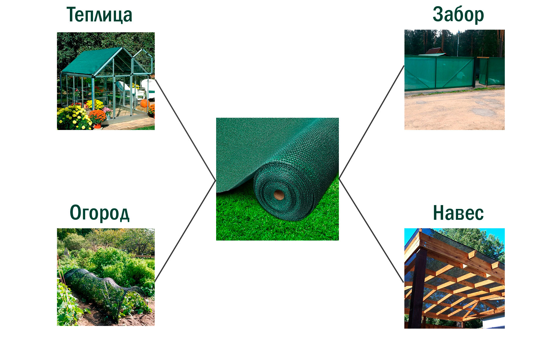 Назначение и сферы применения сетки затеняющей Полотно, вязаное из полиэфирных лент первичной и вторичной переработки, характеризуется по плотности, назначению. Защитный полог, в зависимости от плотности вязки и типа плетения, задерживает 35%-85 % световой энергии. Прямые солнечные лучи рассеиваются, не обжигая листья.